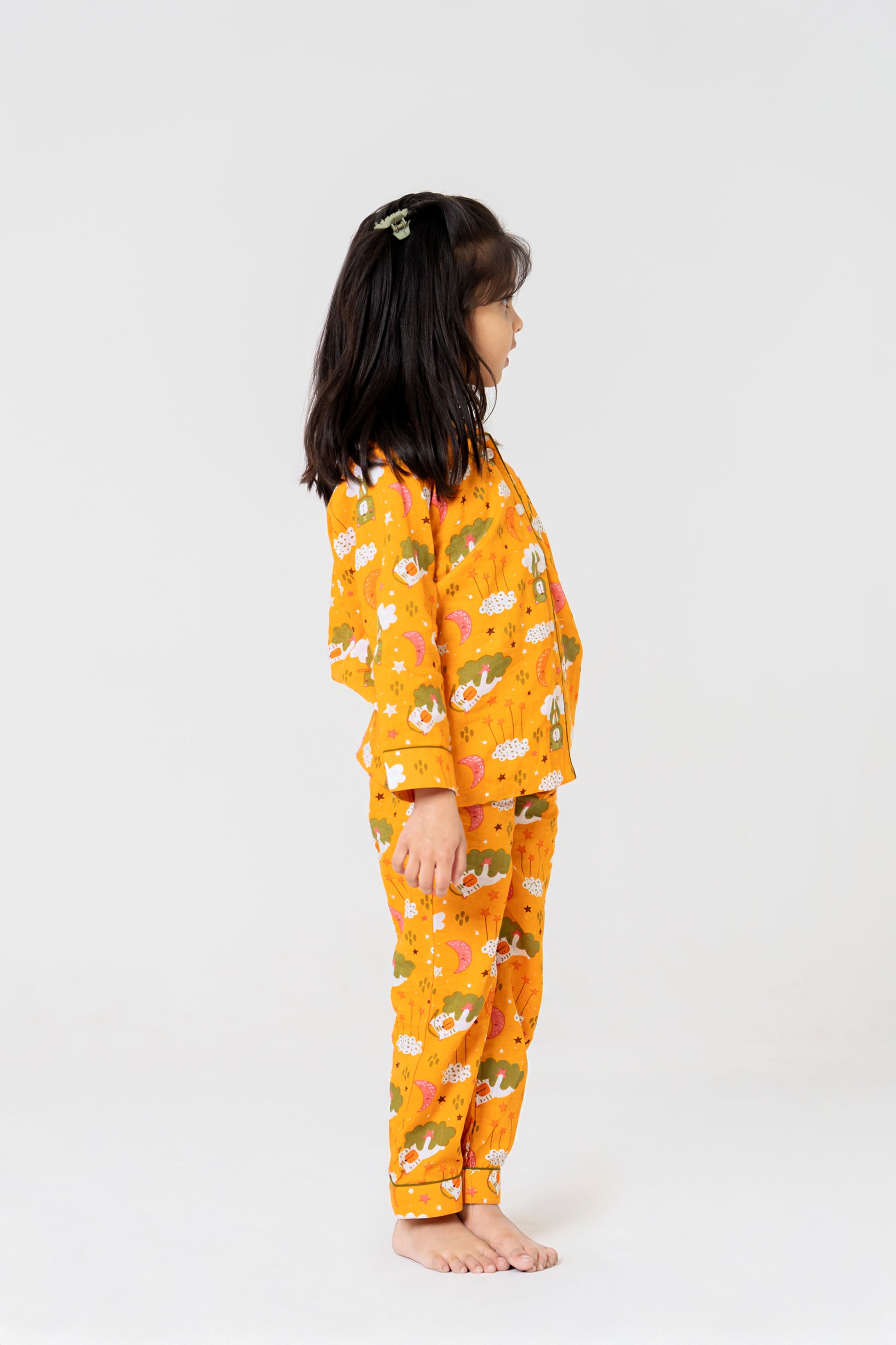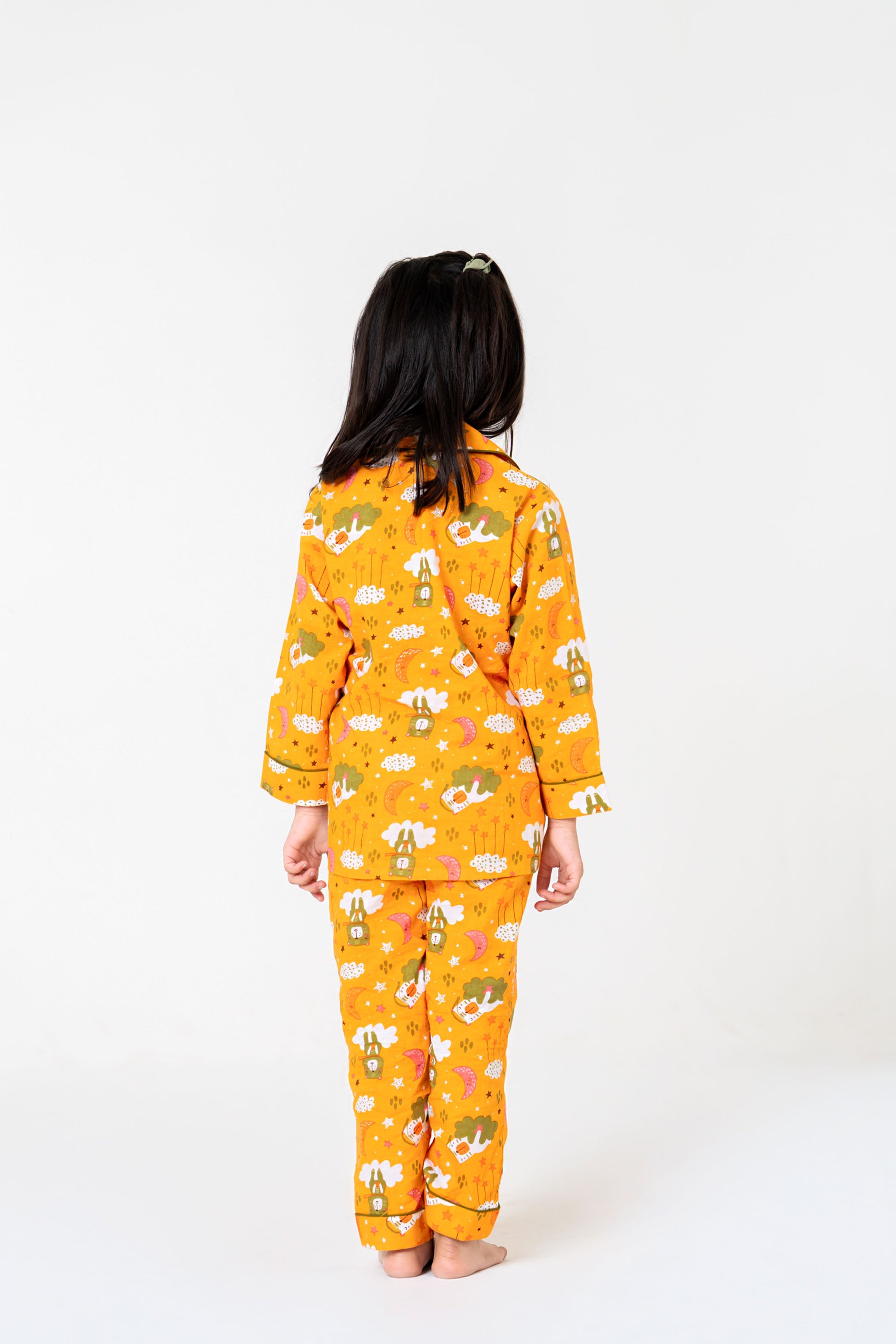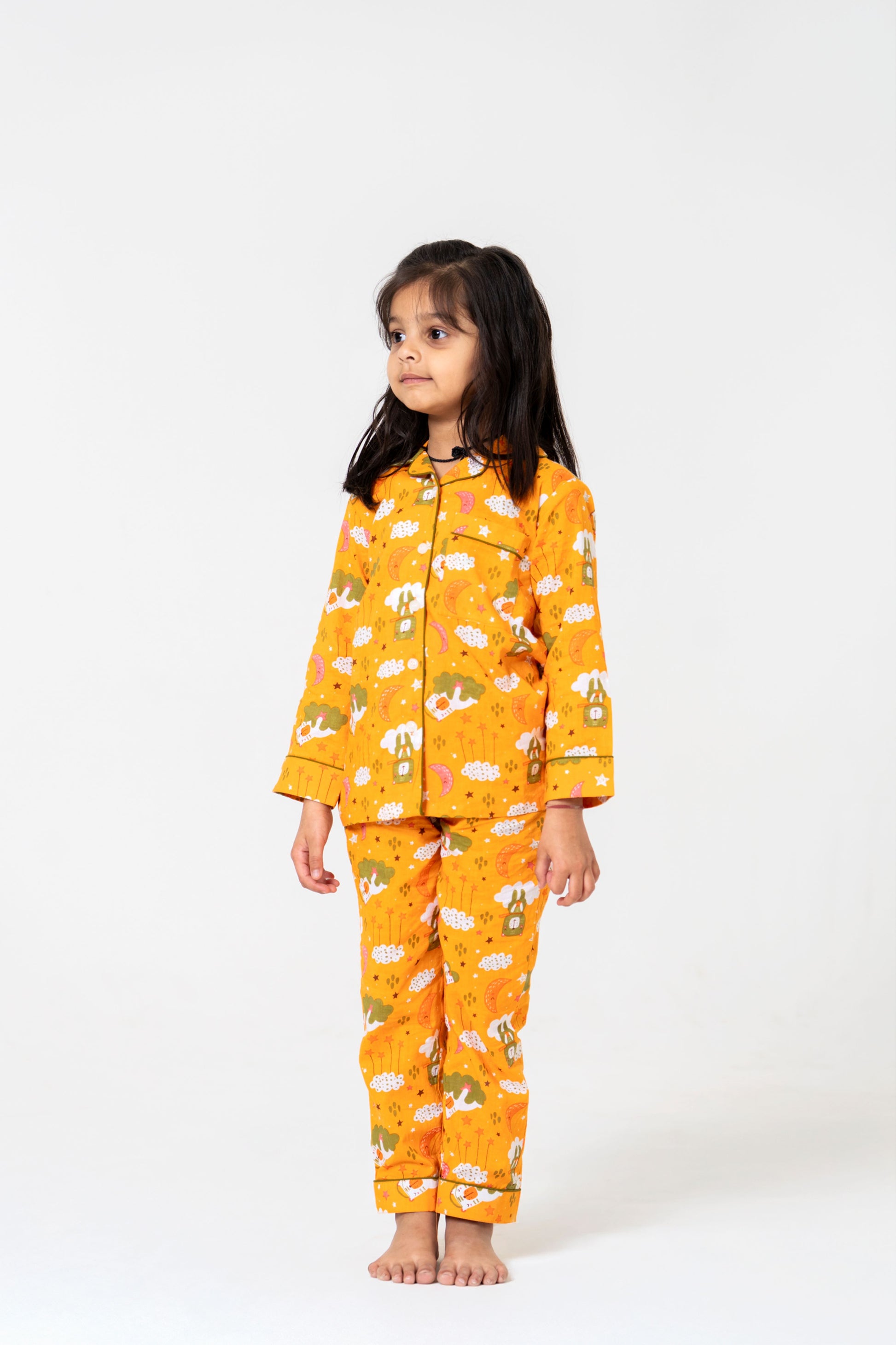 Make bedtime fun and comfy with this charming Orange Cartoon Print Night Suit Set. Crafted from soft, breathable cotton fabric, this set ensures a cozy feel all night long.