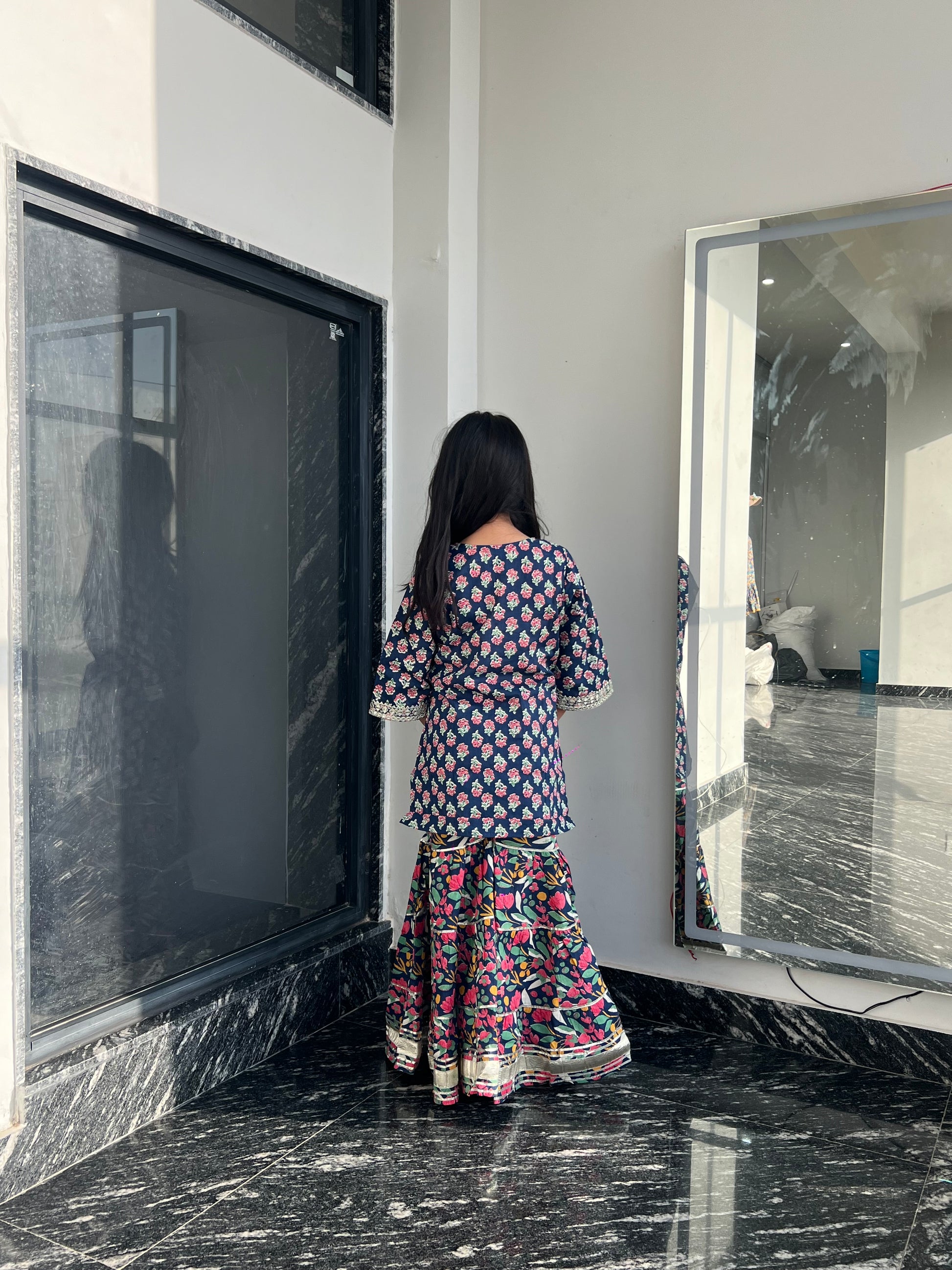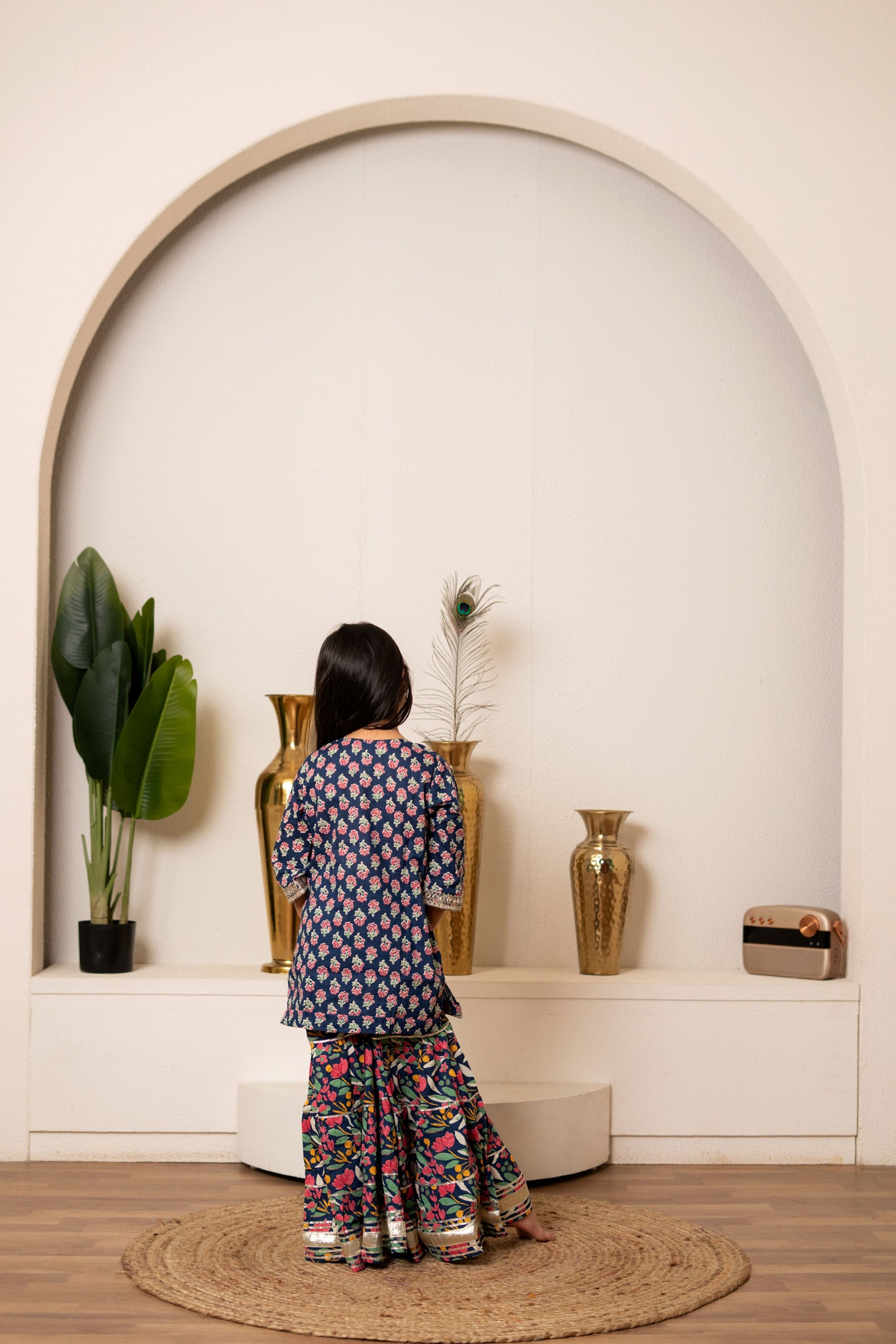 Blue Orchid 3-pc Kurti, Sharara & Dupatta Set for Girls