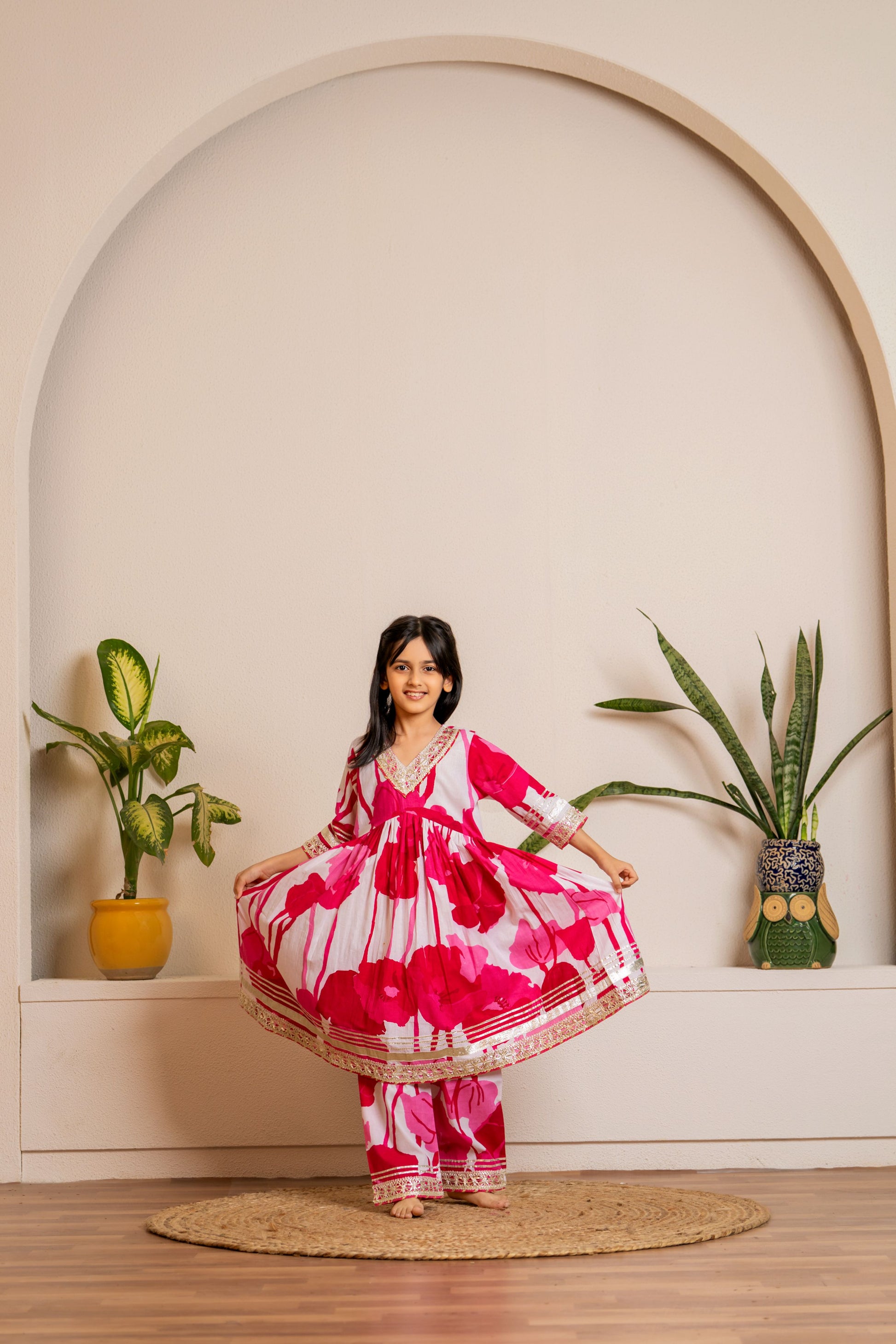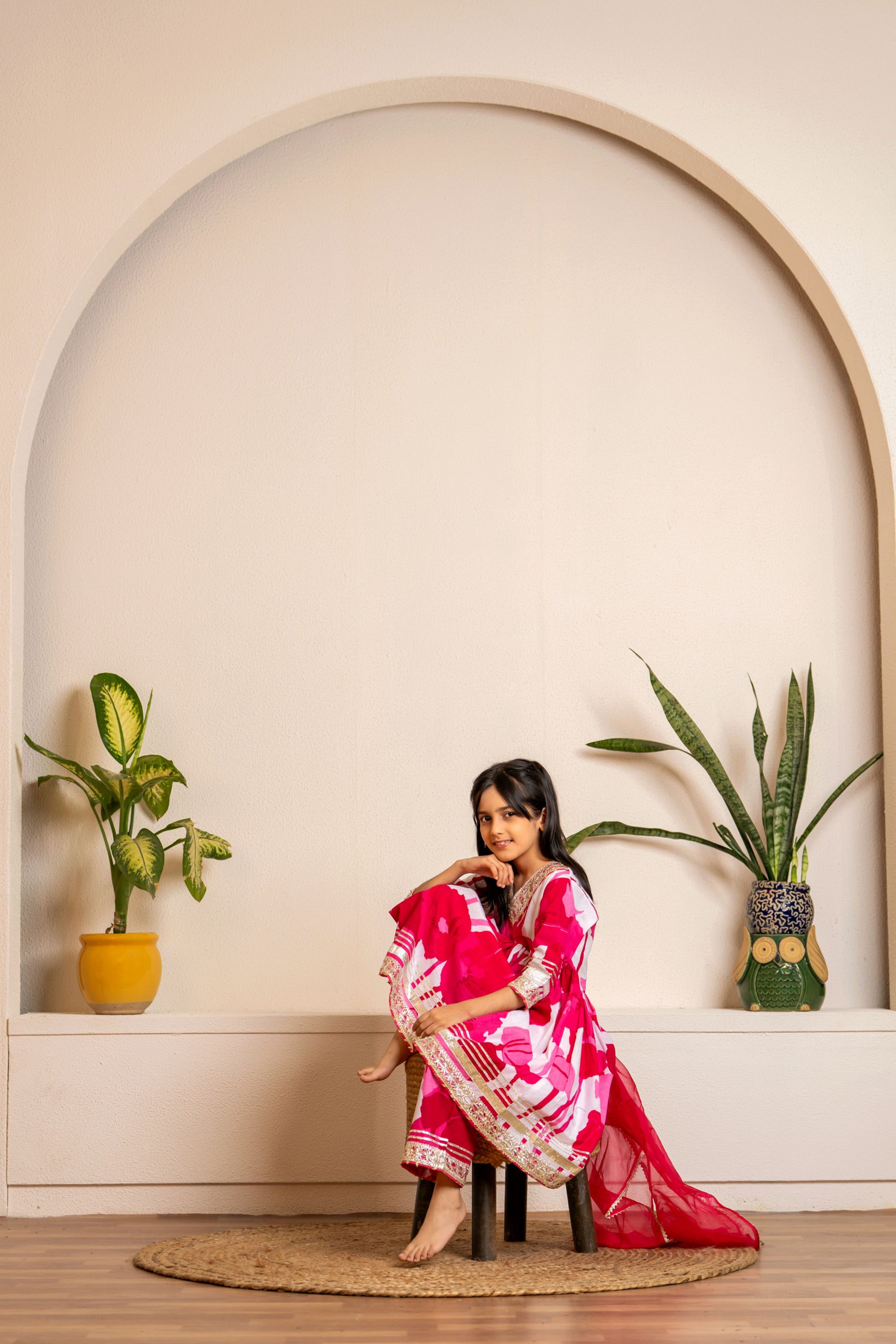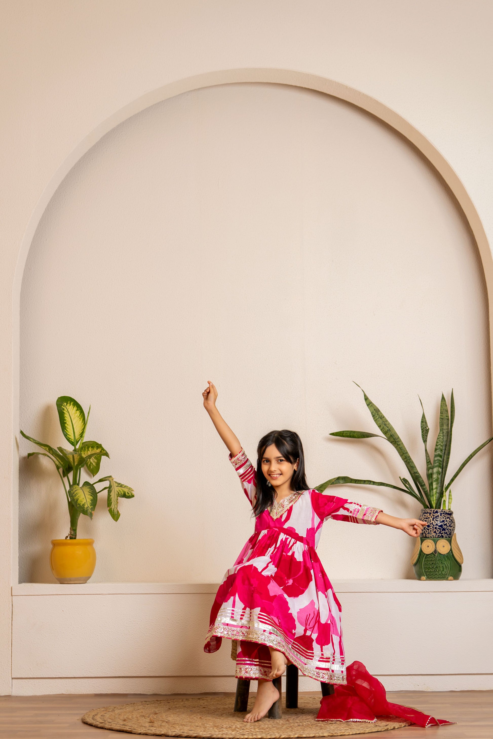 Pink Flower Anarkali 3-pc Suit Set for Girls