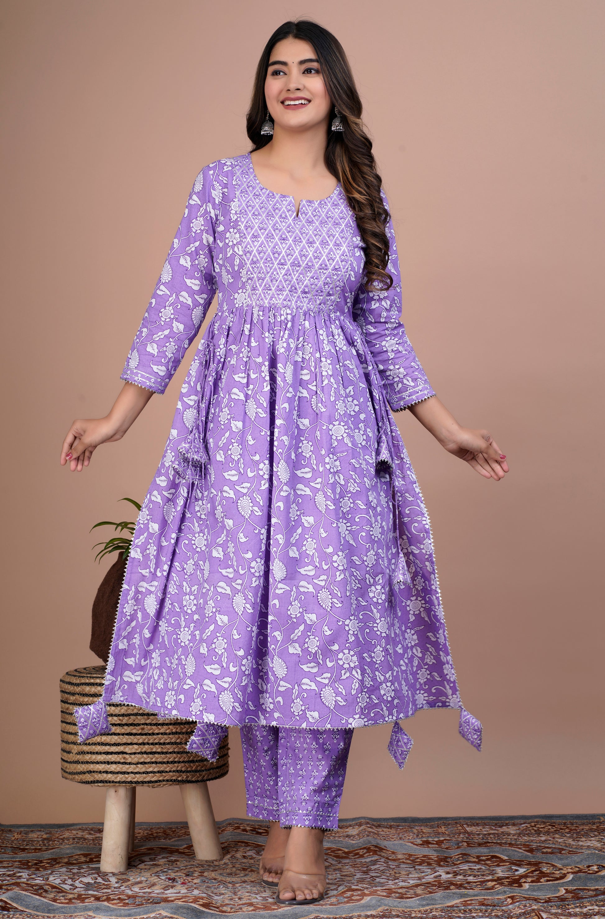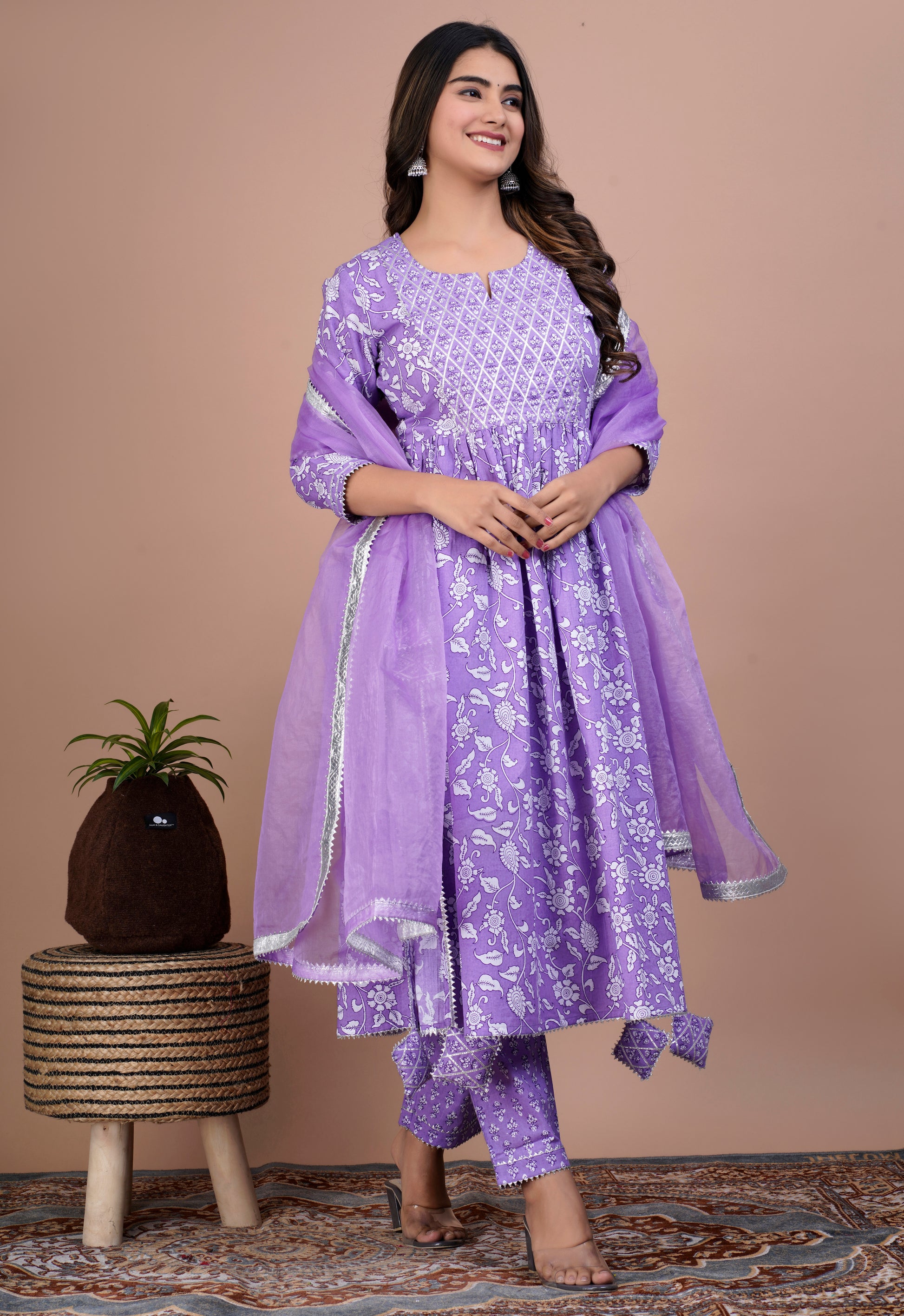 Lavender Gota Work Kurta Set for Mom & Daughter - Twinning in Elegance