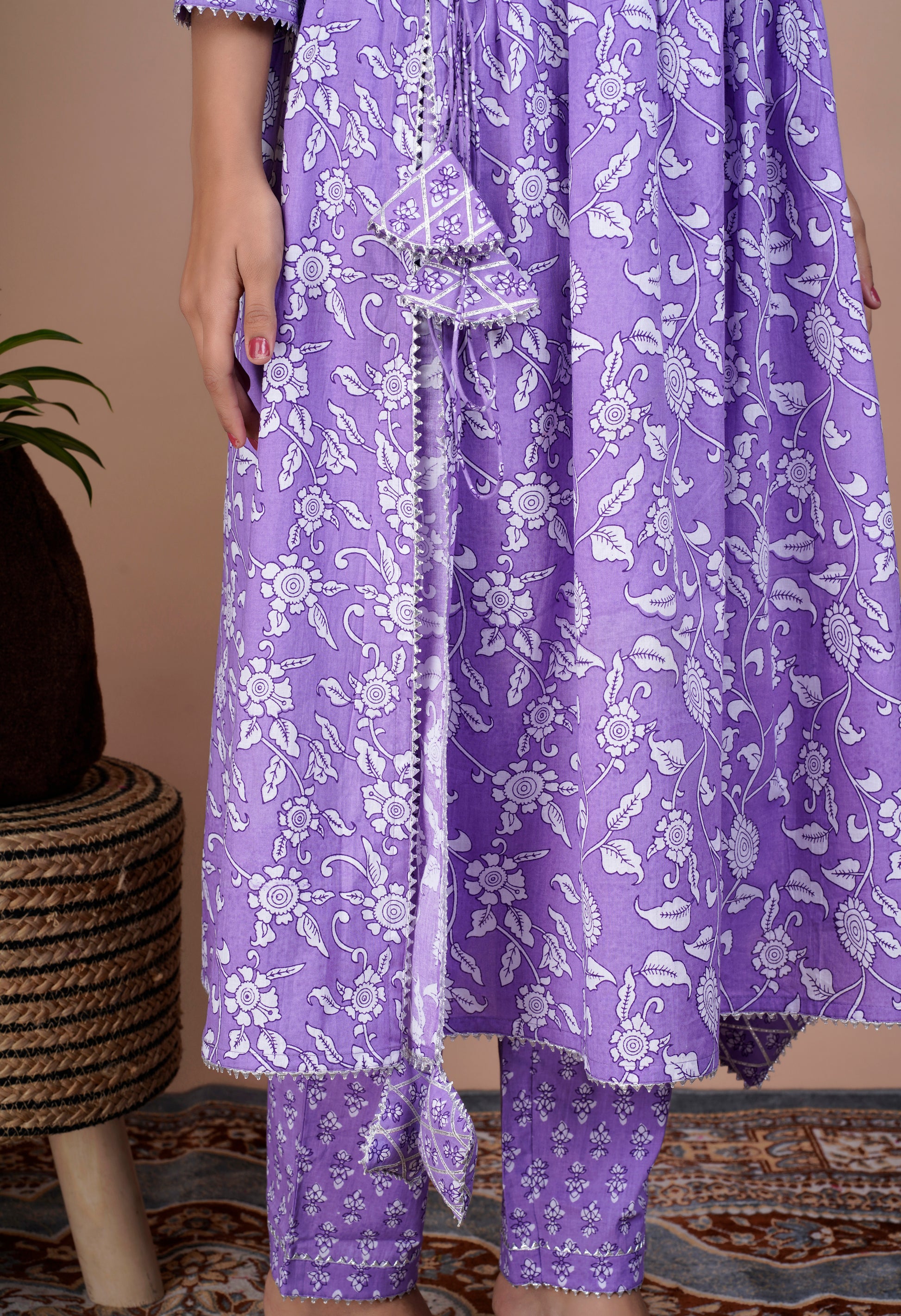 Lavender Nyra Cut Kurta, Pants and Dupatta Set