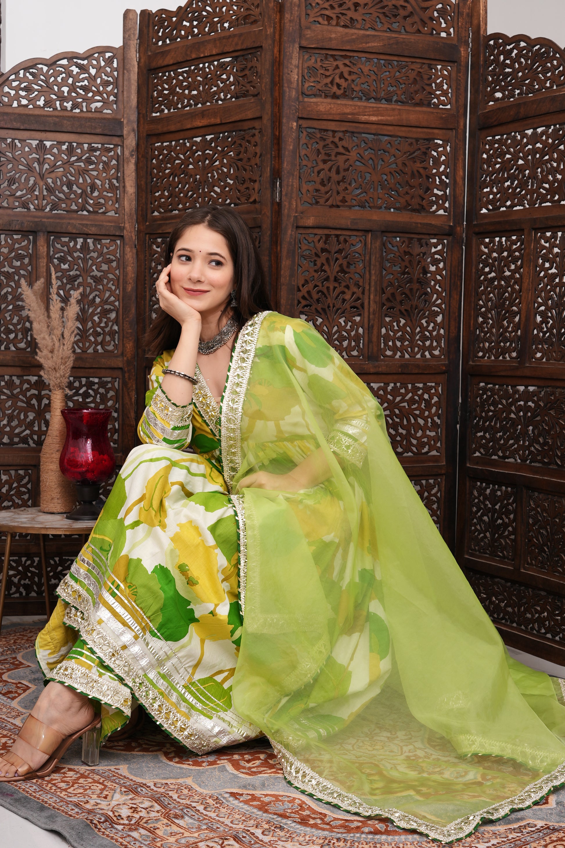 1 Anarkali Kurta, 1 Palazzo, 1 Organza Dupatta