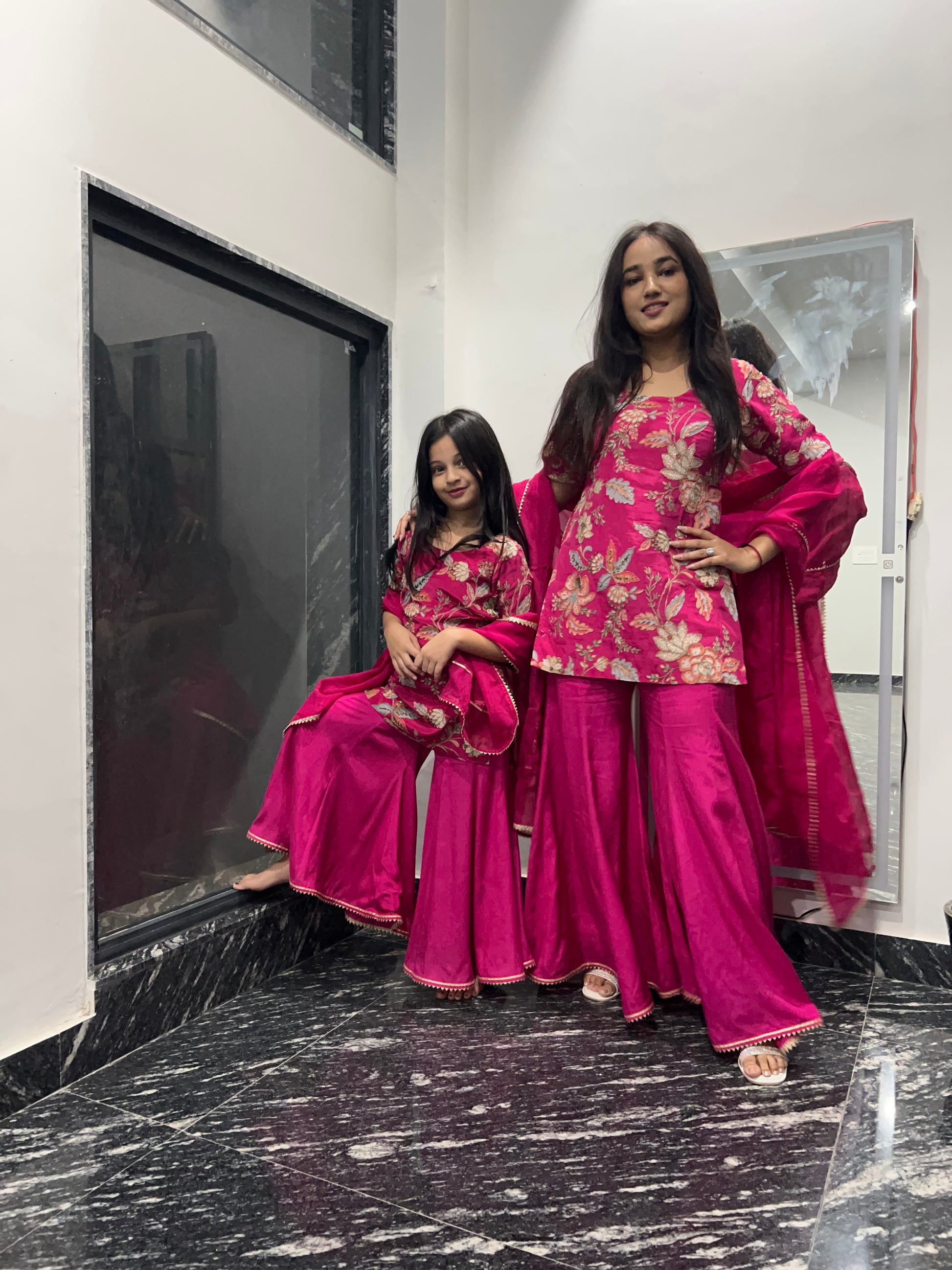 👩👧👗 Fuchsia Pink Embroidered Co-ord Set – For Mum & Mini! 👗👩👧