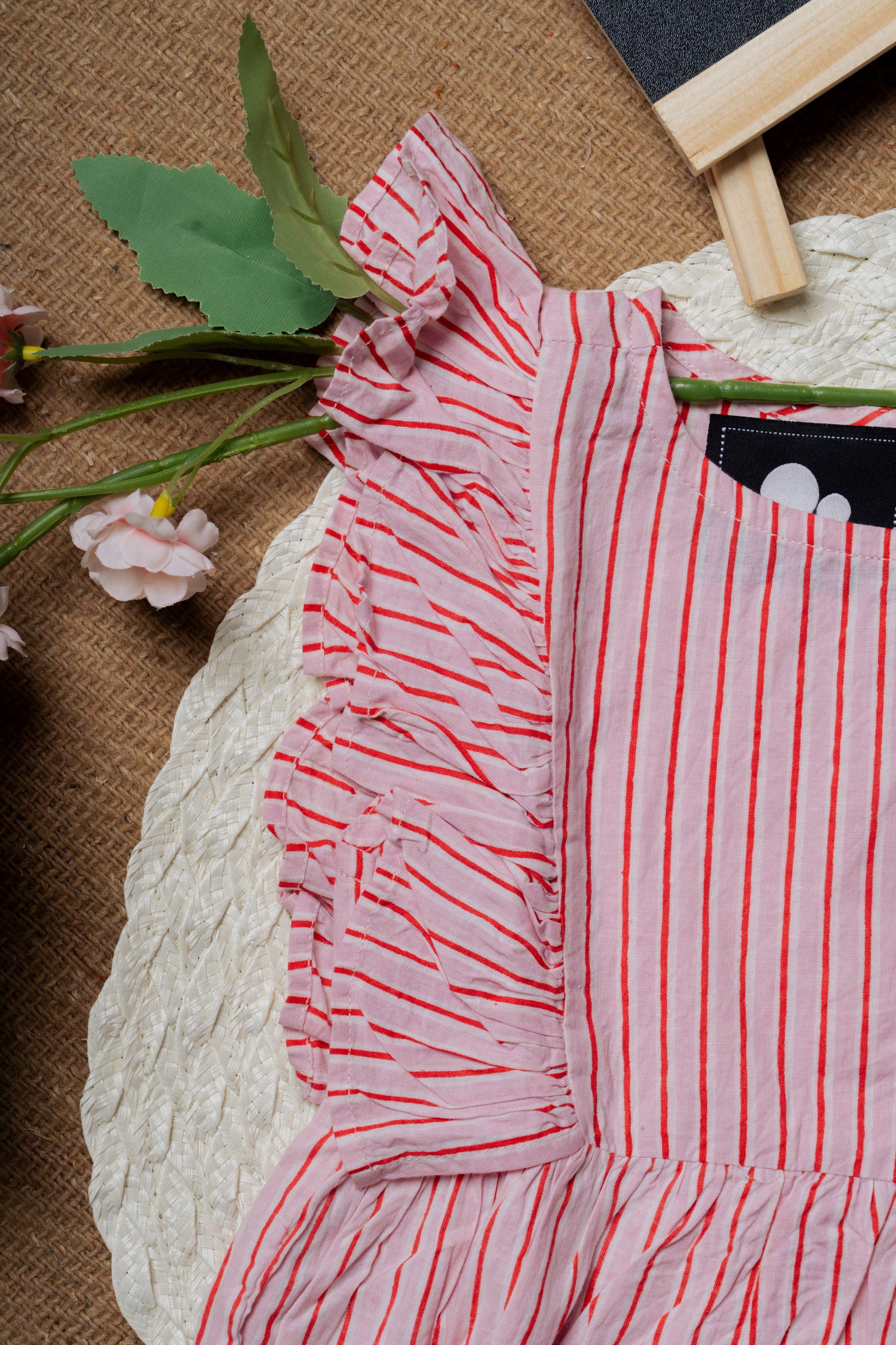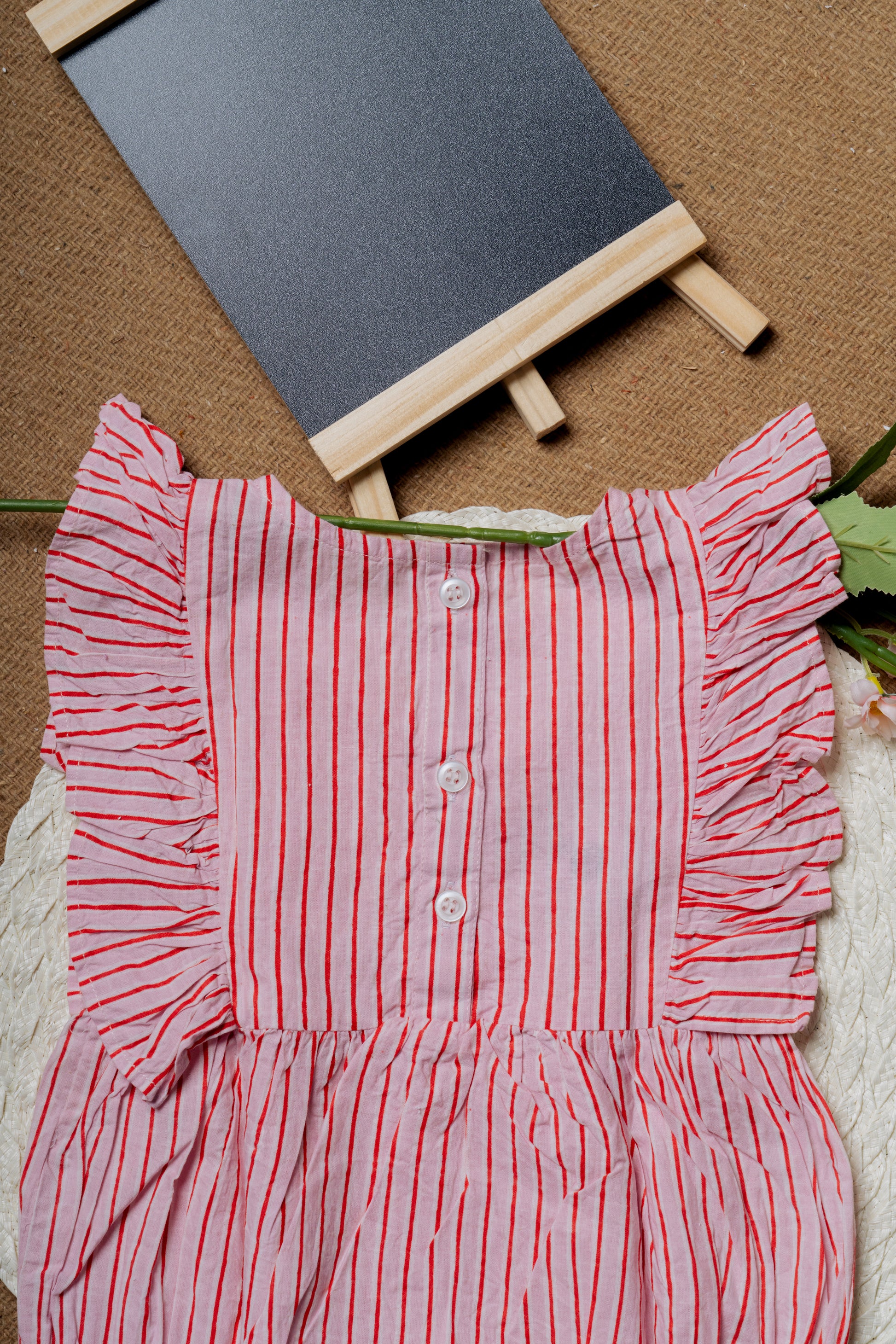 1 Pink Striped Ruffled Romper – Adorable, comfy, and perfect for playful moments!