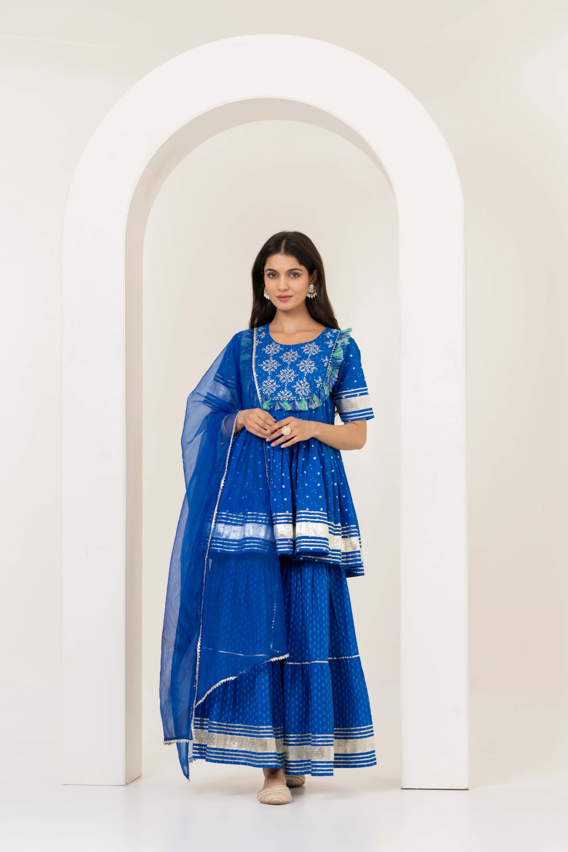 ✔ 1 x Women's Blue Anarkali Kurti, Sharara & Dupatta