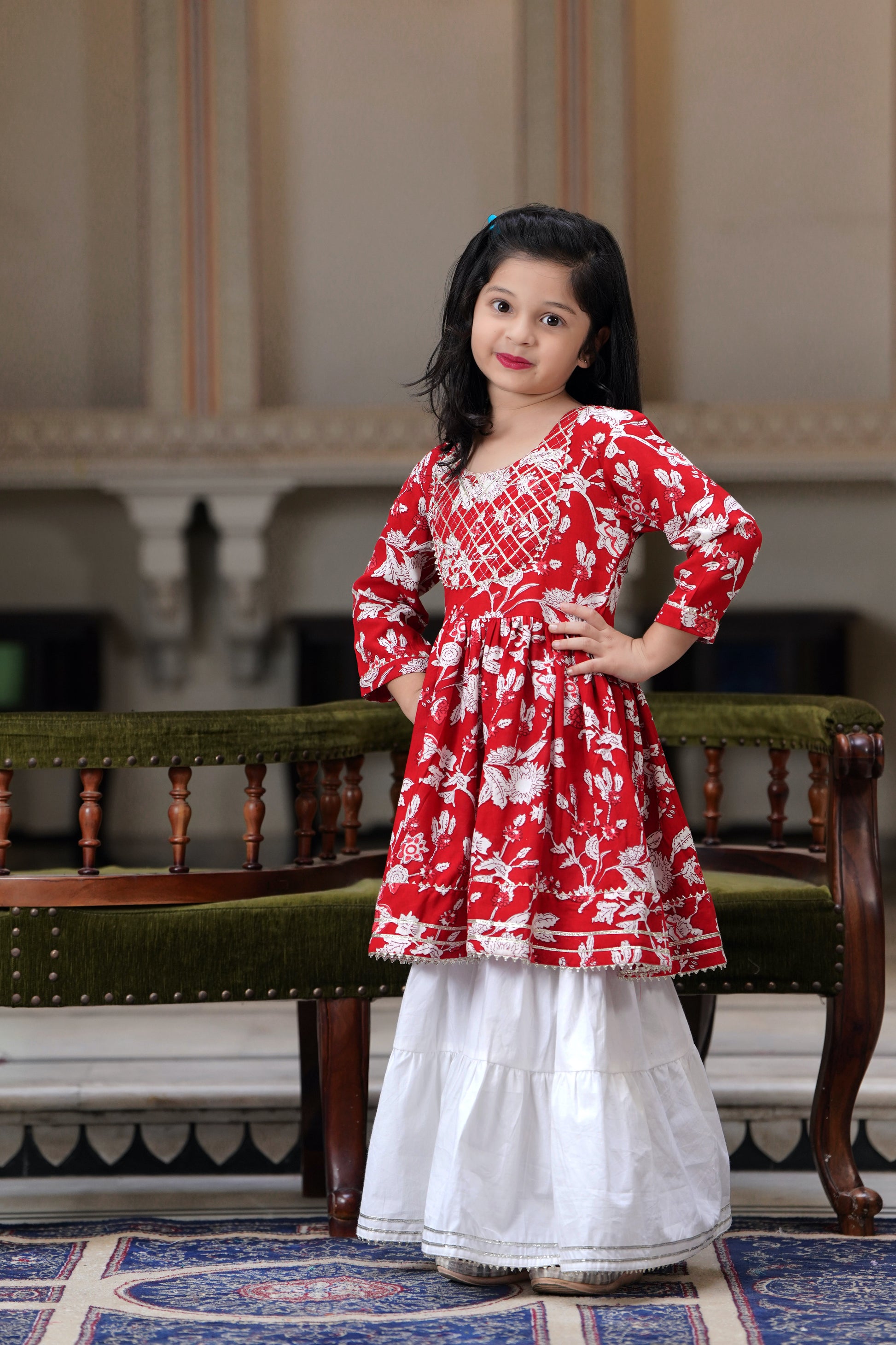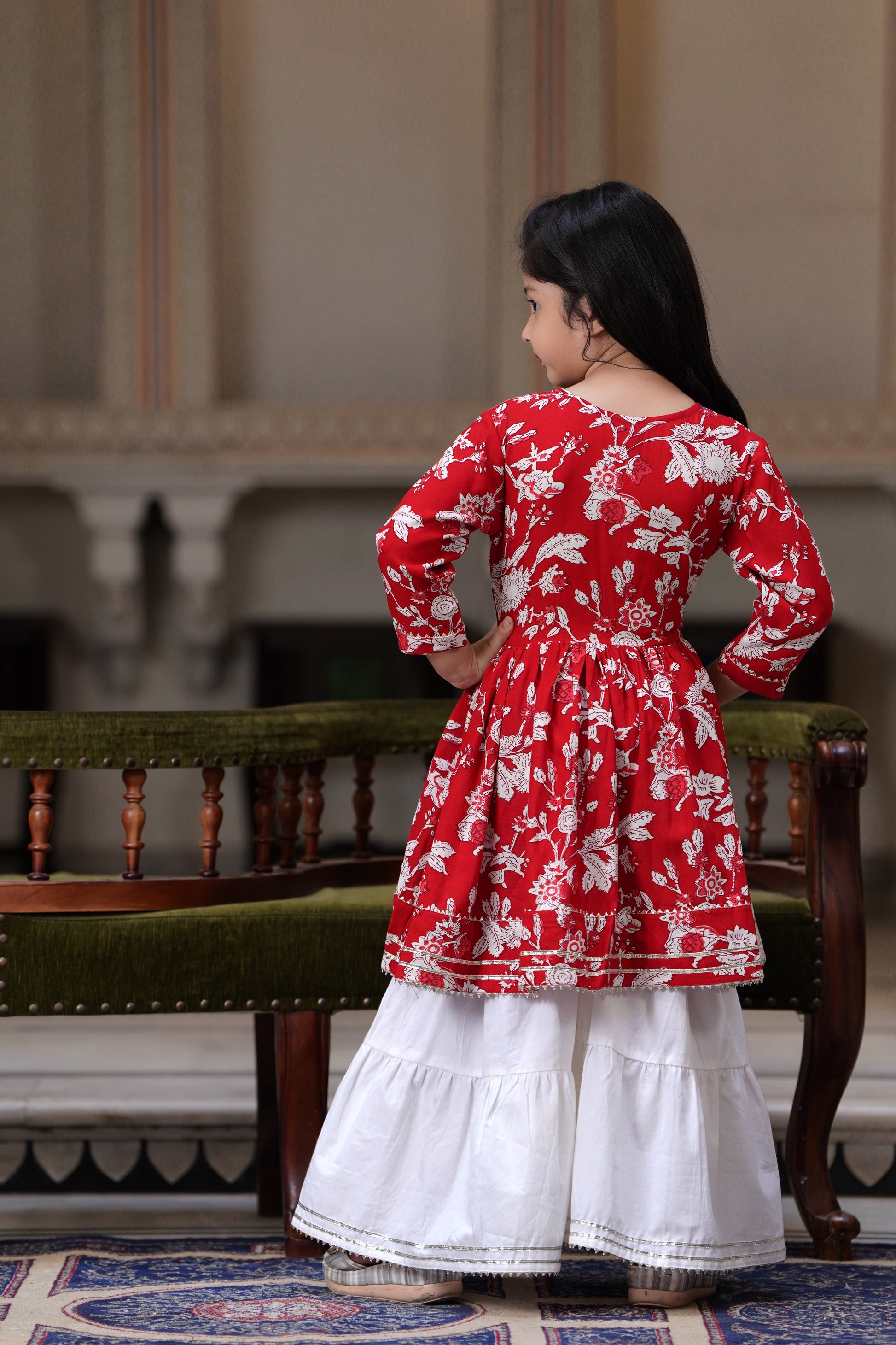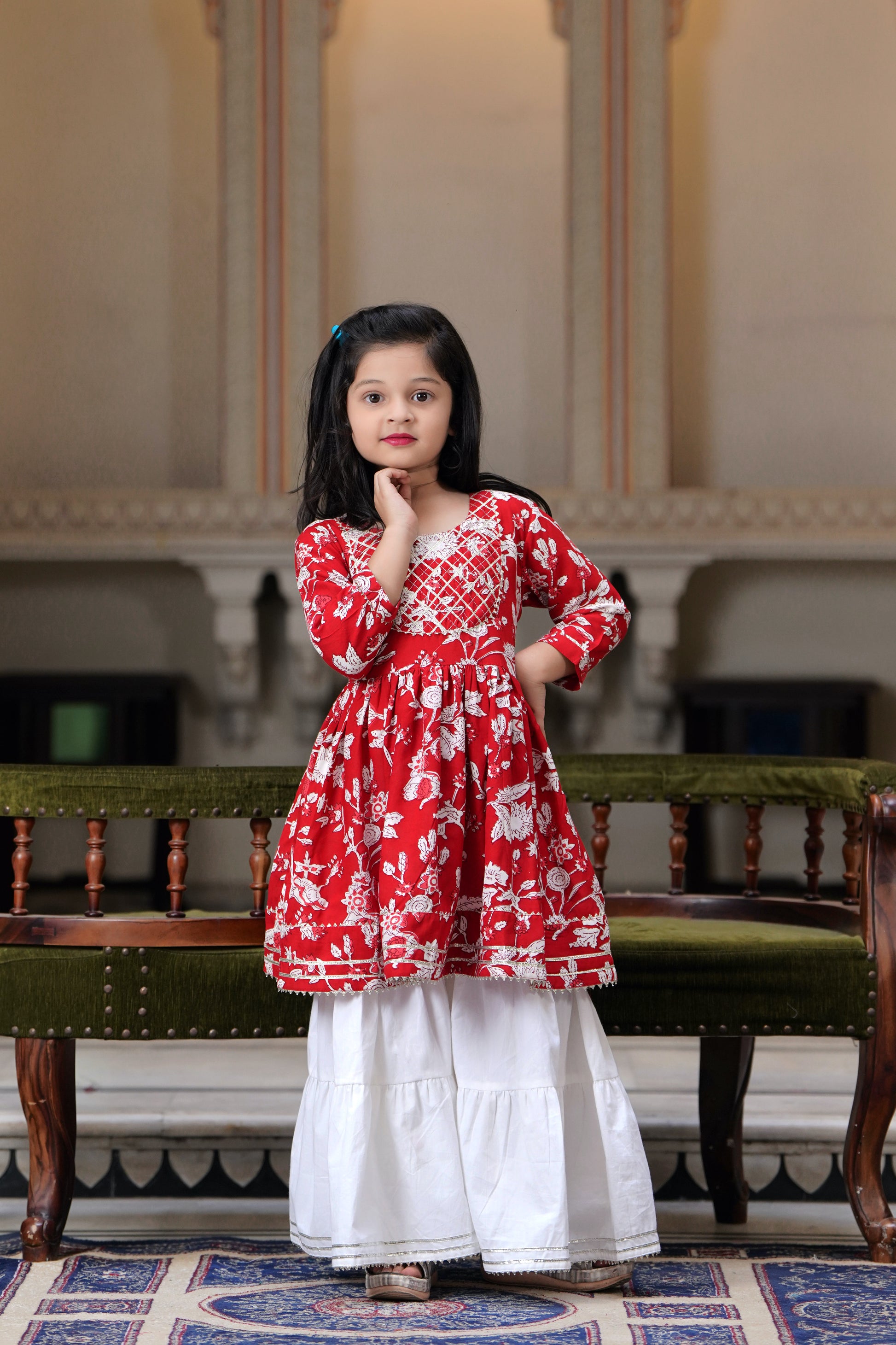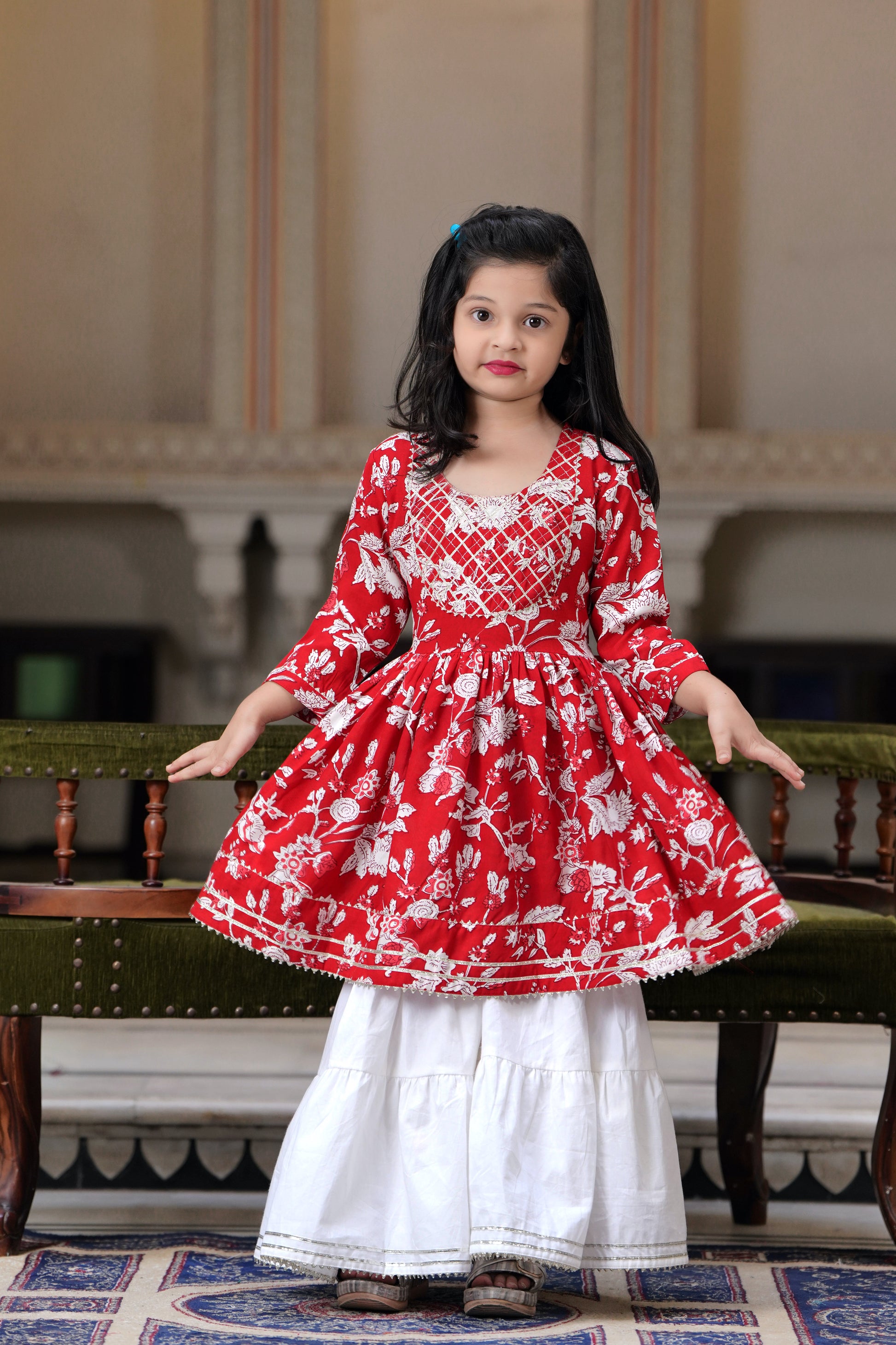 The detailed gota work done perfectly all over yoke with minimal gota work on the hemline & sharara.